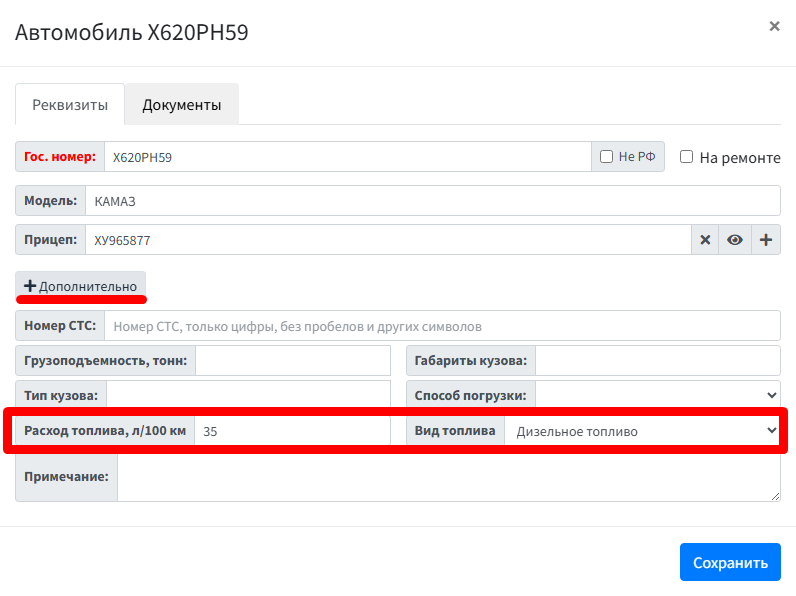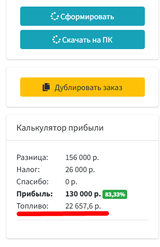 После заполнения всех данных, внутри дополнительного калькулятора будут подставляться данные расхода на топлив.