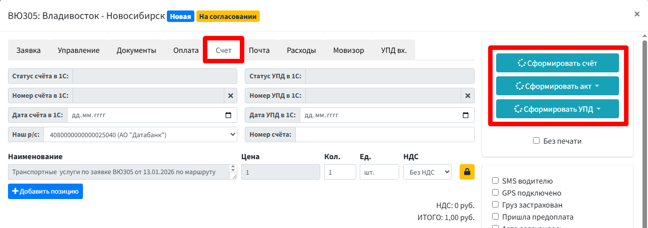 Открываем любой заказ и во вкладке Счет нажимаем кнопку "Сформировать"