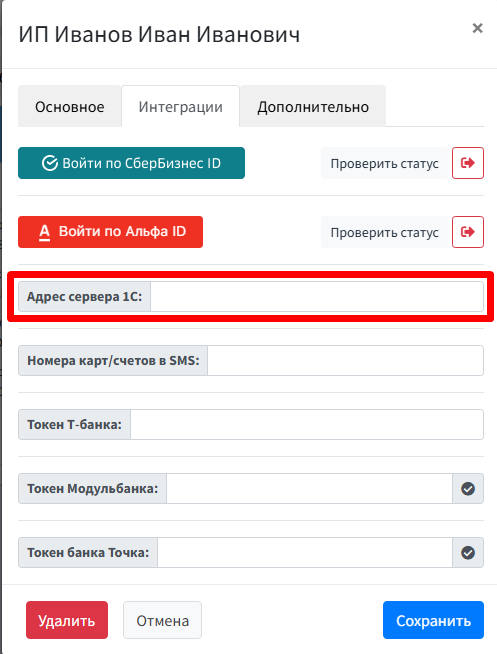 Вставляем логин и пароль которые вы получили от ваших специалистов из 1С и нажимаем "Сохранить"
