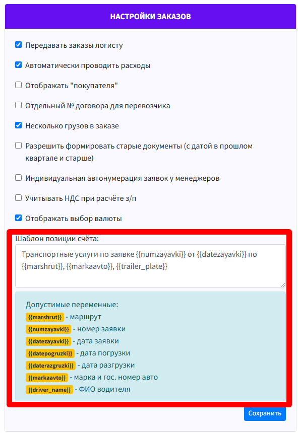 В данном поле указываете тот образец который вам требуется, переменные для этого поля берем исключительно указанные ниже под ним. Нажав на них 1 раз, они копируются в буфер обмена.