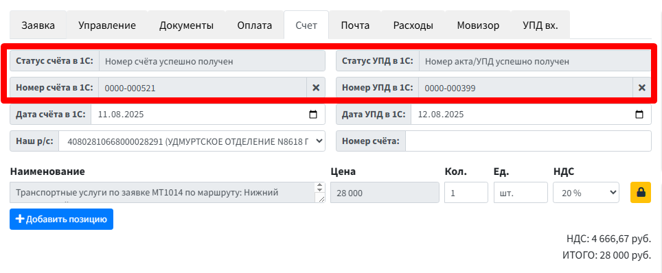 При настроенной интеграции с 1С в этих полях будут указаны номера документов взятых с самой 1С.