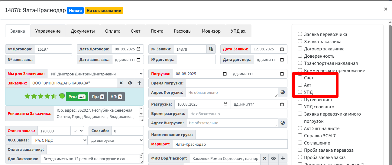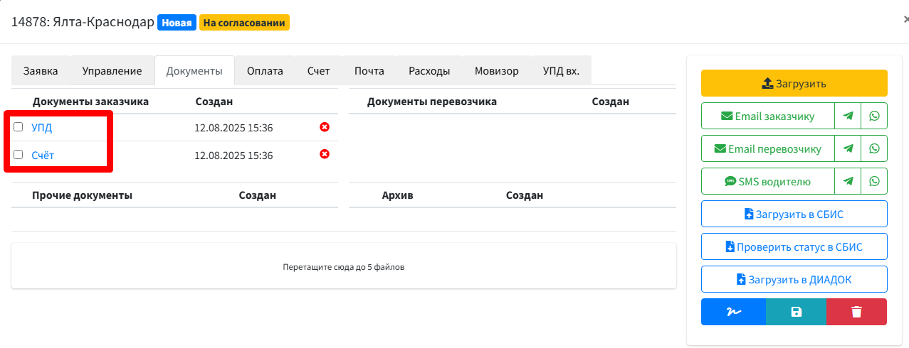 После формирования вас перекинет на вкладку "Документы" от куда можно переслать данный документ контрагенту или скачать его на ПК